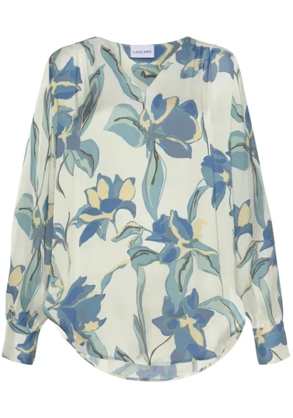 Blusen|LASCANA Satinbluse Creme Bedruckt