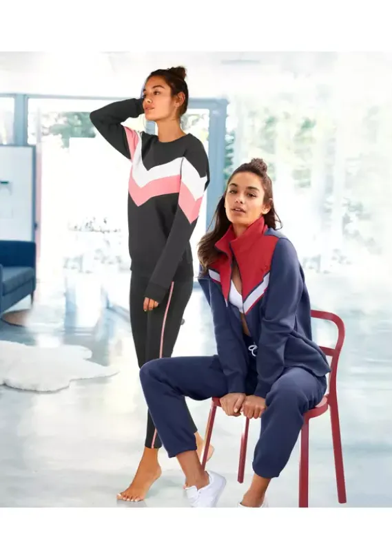 Damenshirts|H.I.S Sweatshirt Anthrazit-Rosa-Weis