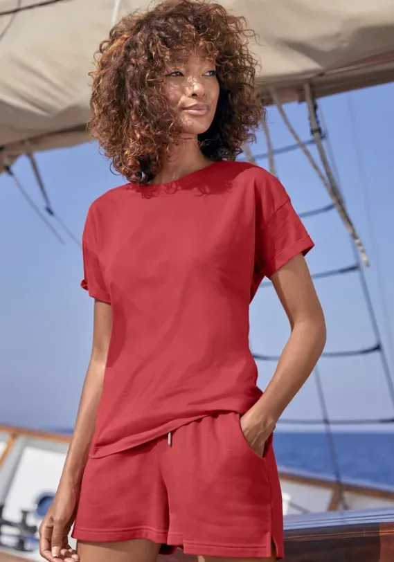 Damenshirts|H.I.S T-Shirt“Mit Armelaufschlag“ Rot