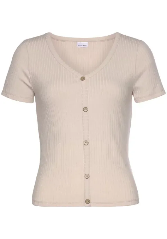 Damenshirts|LASCANA Kurzarmshirt Beige