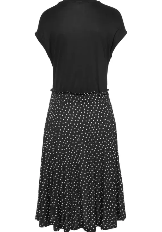 Kurze Kleider|Beachtime Jerseykleid Schwarz-Gepunktet-Bedruckt
