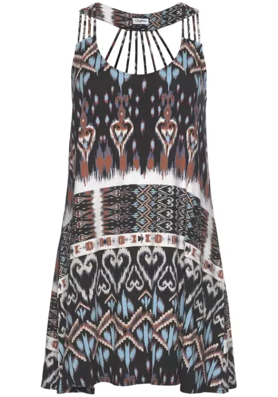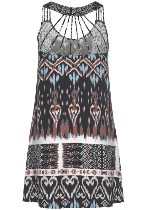 Kurze Kleider|Buffalo Strandkleid Schwarz-Bedruckt