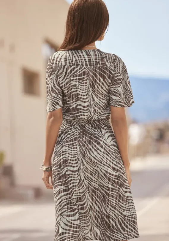 Kurze Kleider|LASCANA Wickelkleid Braun-Lindgrun Bedruckt