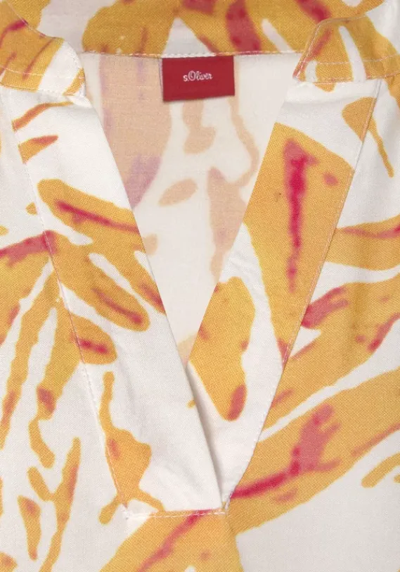 Kurze Kleider|s.Oliver Blusenkleid Orange-Creme-Bedruckt