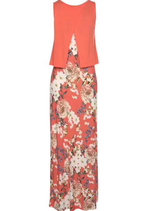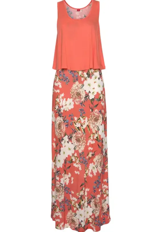 Maxikleider|s.Oliver Maxikleid Koralle-Bedruckt