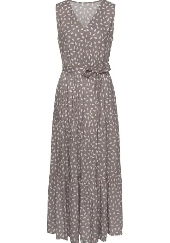 Maxikleider|Vivance Maxikleid Taupe-Creme Bedruckt