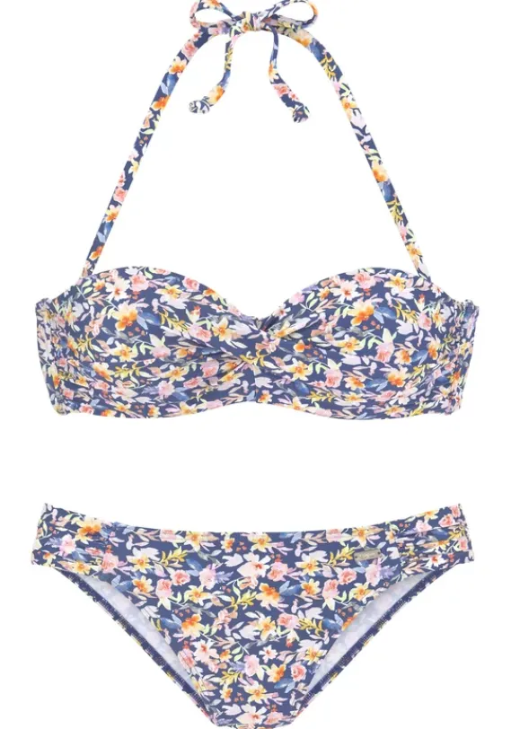 Nachhaltige Bademode|Buffalo Bugel-Bandeau-Bikini“Tara“ Blau-Bedruckt