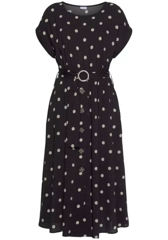 Strandkleider|LASCANA Midikleid Schwarz-Sand-Bedruckt