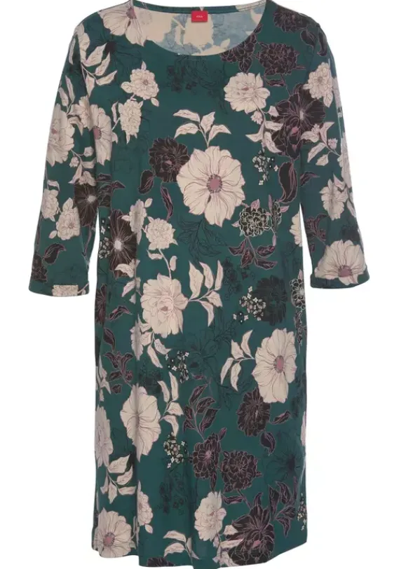 Nachhaltige Nachtwasche|s.Oliver Nachthemd Dunkelgrun-Geblumt