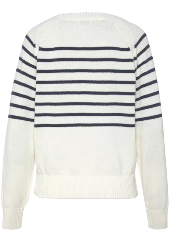 Pullover|Vivance Streifenpullover Weis-Marine